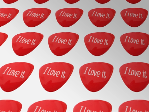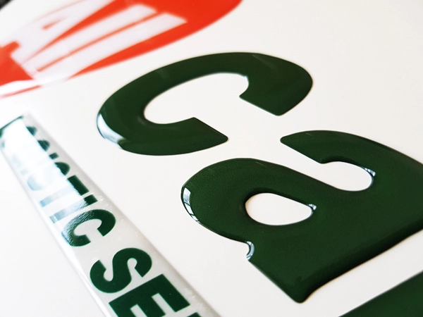 מדבקה בולטת של לוגו החברה, מושכת את העין, בוהקת באור ומשדרת יוקרה.